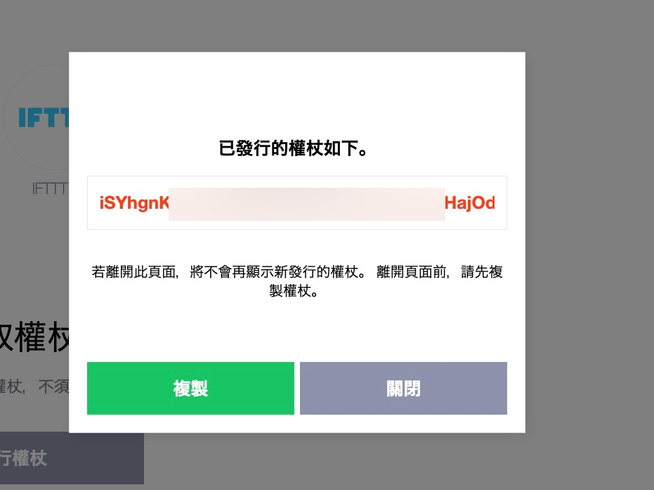 這邊就會獲得一組權杖金鑰,將他複製下來貼到剛剛外掛的設定頁面去。