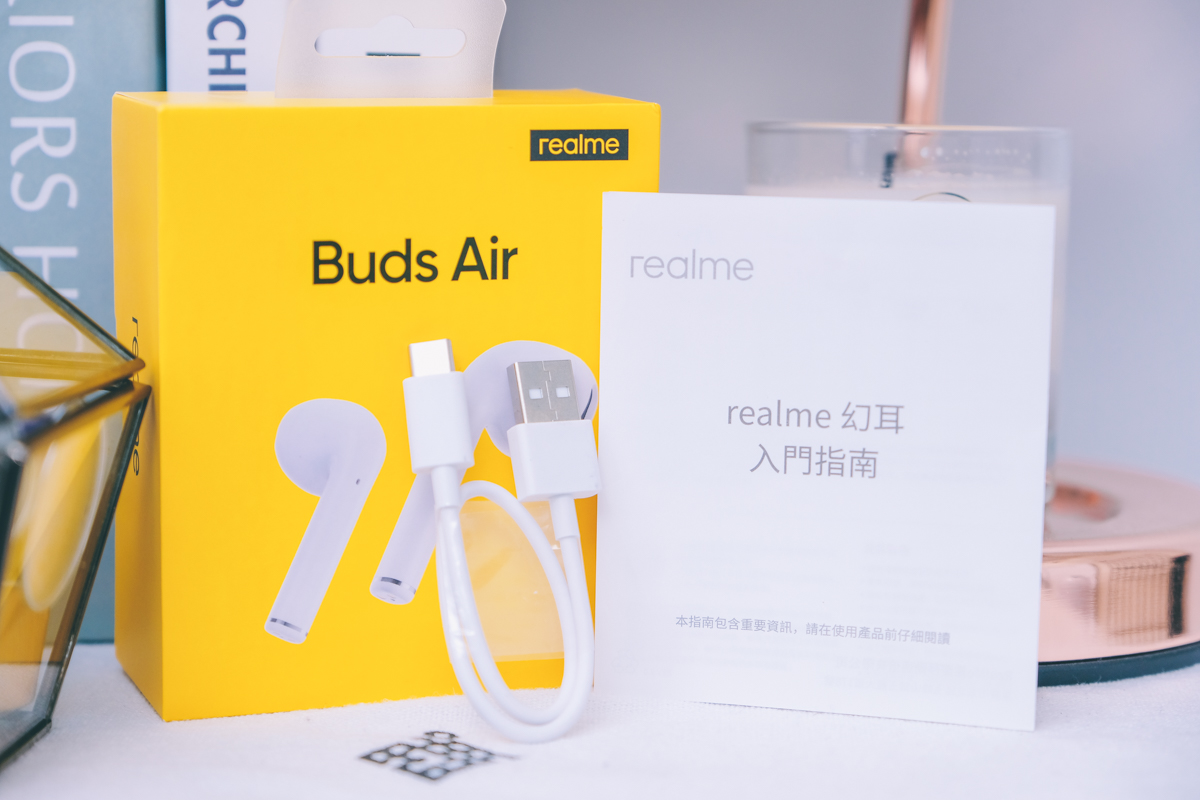 內附的配件包括有 realme Buds Air 的入門指南說明書以及可以用來幫無線充電盒充電的 USB Type-C 充電線。