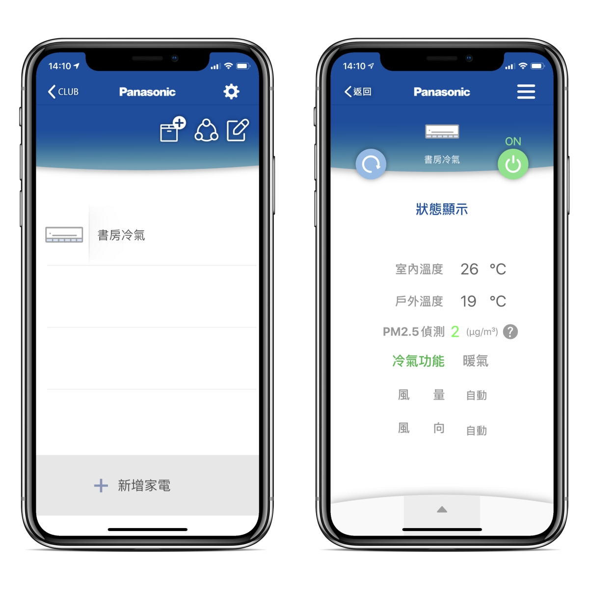 配對很簡單,只要透過 Panasonic 自家的 Smart App 不用 30 秒就搞定,預設畫面可以看到空調的狀態,即便你出門在外也可以查看家中的氣溫跟空氣品質狀況,而且在 APP 中還有戶外溫度讓你做比對,假設你今天是想在下班回家前提早開好空調的話,就可以比對一下溫度決定是否要開啟。