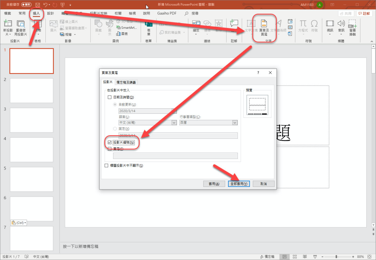 PowerPoint 教學 - 如何在簡報自動加入每頁編號?