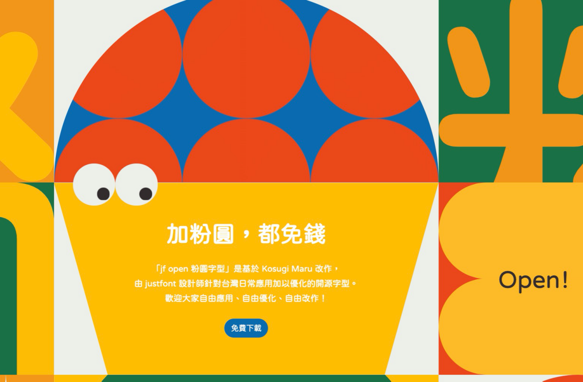 jf open 粉圓字型網址:https://justfont.com/huninn/進入網站後就可以直接點擊中間的「免費下載」進行下載字型,往下也有很多粉圓字型的相關介紹,阿湯就不多說了。