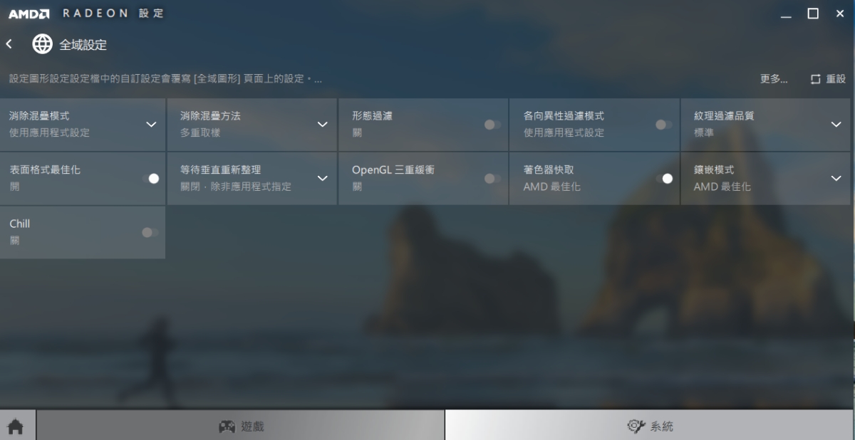 顯示卡的部份,也能透過 AMD 的設定工具,進行更進階的設定,可以依據你的使用來調整裡面的參數。