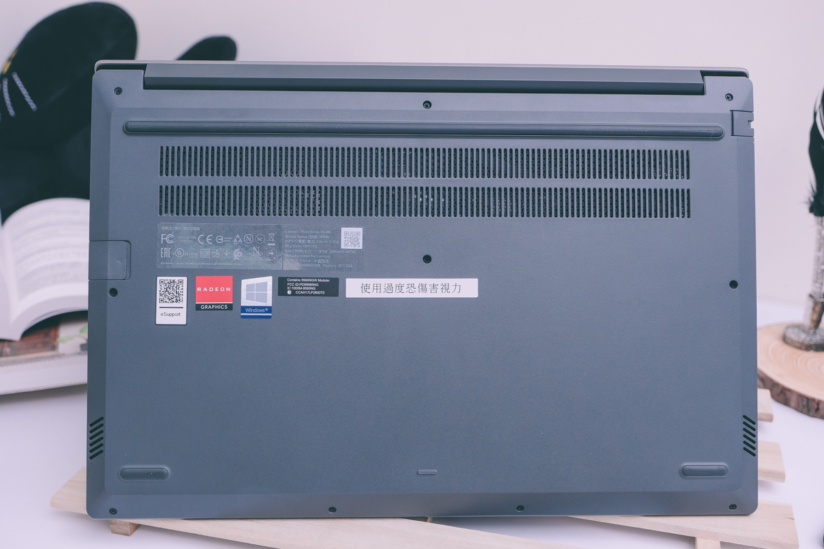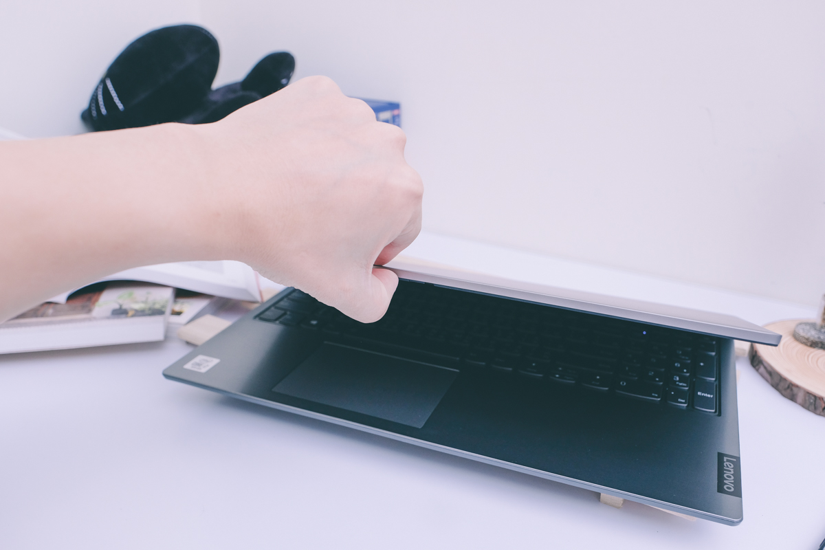 在筆電配重的部份做的非常棒,現在很多筆電為了輕薄都捨棄了配重的部份,也就是無法單手開蓋,一定要一隻手扶著下半部才能開蓋,但 ThinkBook 15 單手就可以開蓋,而且下方是完全不會跟著翹起來的。