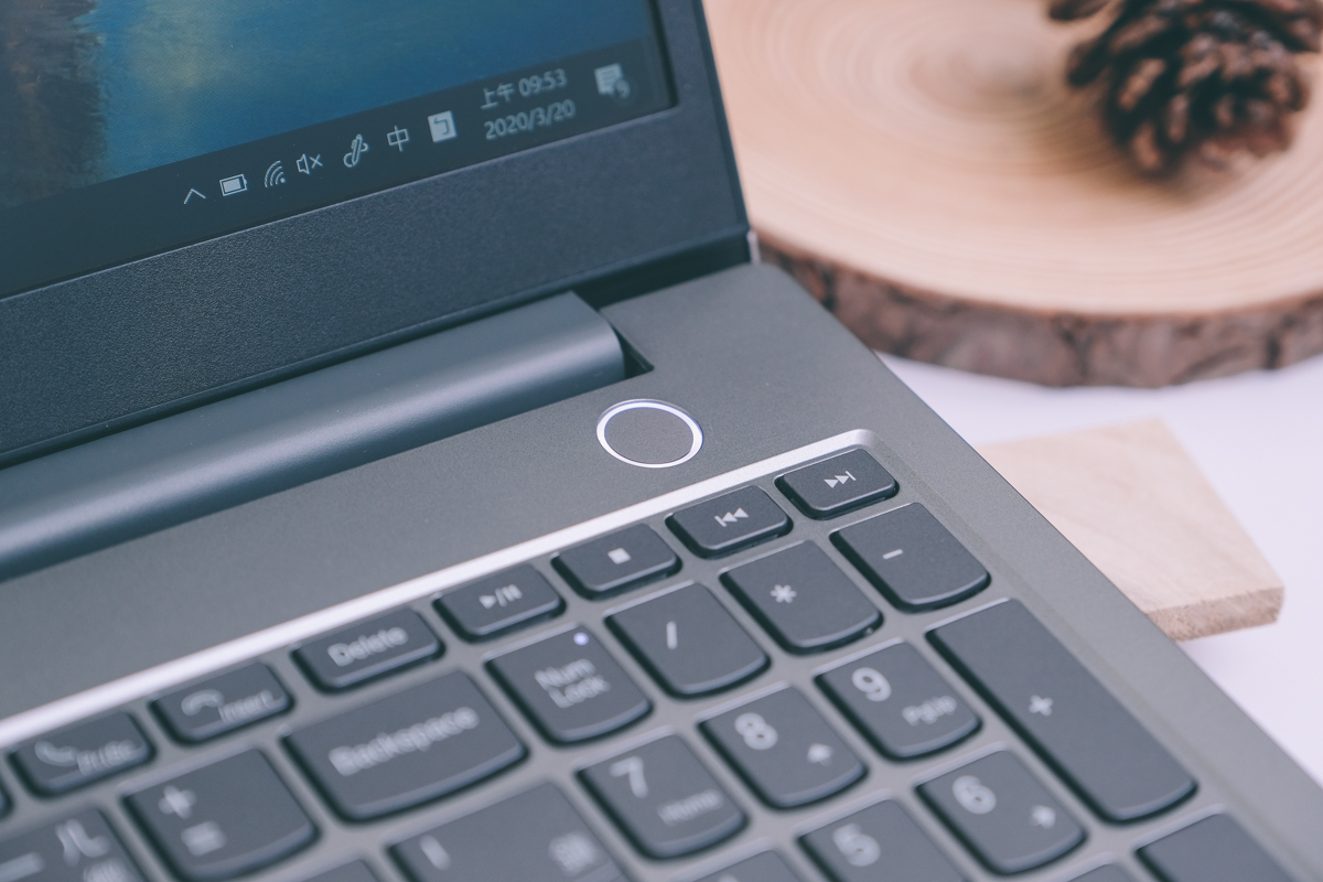 右上角的電源鍵同時也是指紋辨識器,一進入系統只要手指一放就可以放上登入。