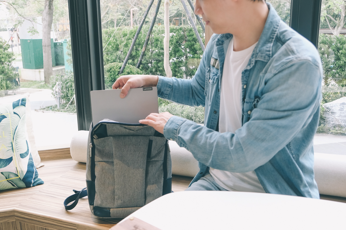 阿湯某天外出時,原本要帶大的筆電包,但嘗試了一下,沒想到我之前為了 13.3 吋購買的筆電後背包,也能塞進這 15.6 吋的 ThinkBook 15,攜帶完全無負擔。