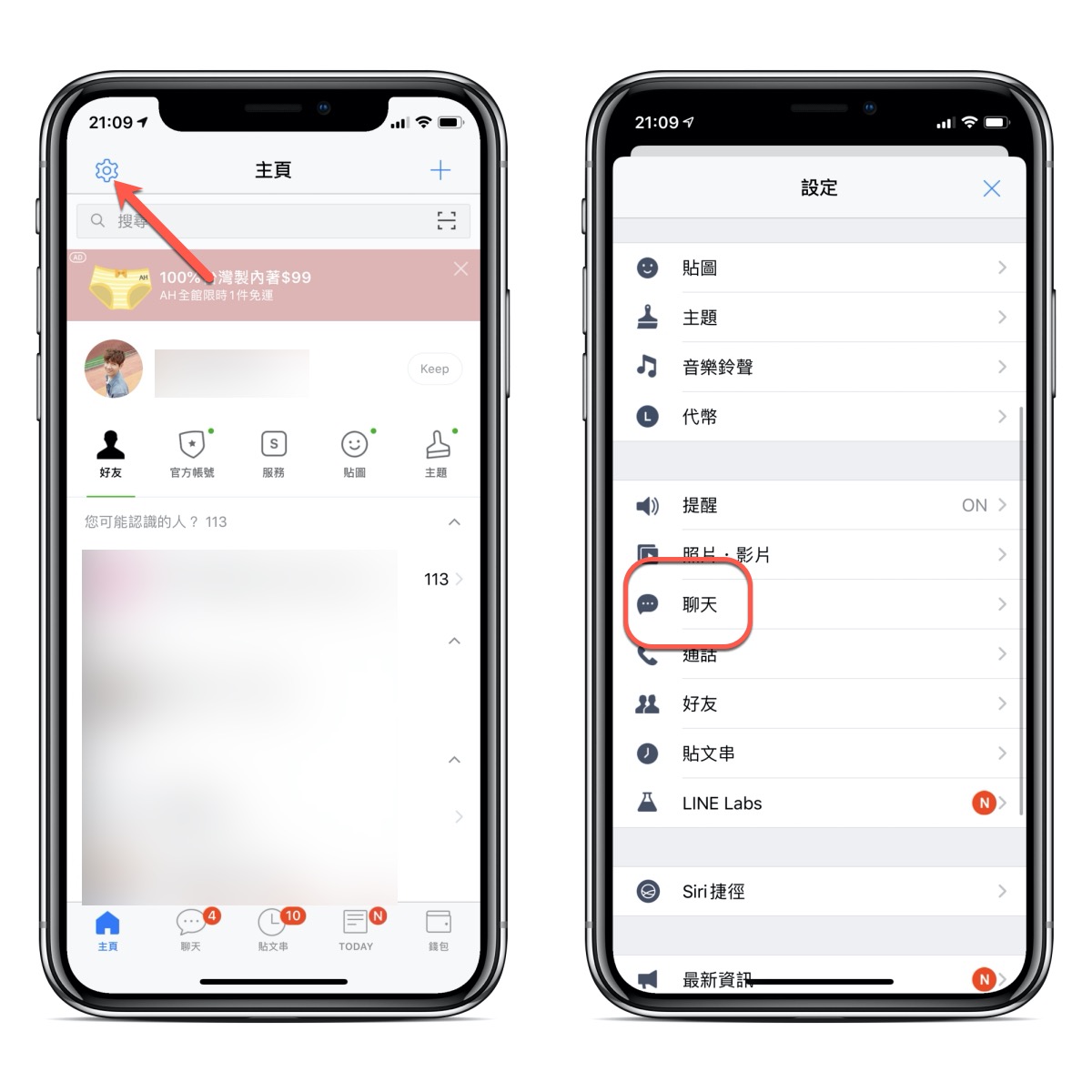 記得目前是 iPhone 先開放,Android 還沒有。 要自己手動去打開自動備份的功能,首先在首頁左上角進入設定 > 聊天。
