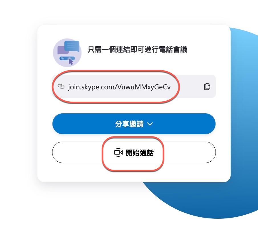 註:需使用 Google Chrome 瀏覽器或微軟自家的 Microsoft Edge 瀏覽器才能開啟,另外手機開啟的話只能安裝 Skype 或者有可能會開啟不了。