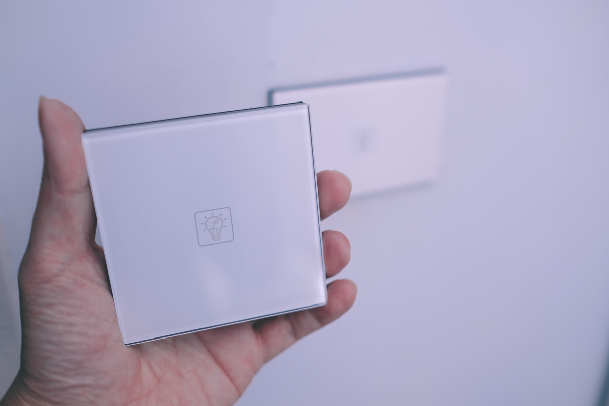 不僅是單火版,連面板都換成了燈泡的圖示,我覺得好看很多,然後左邊那個正方形的叫做隨易貼,只要裝二顆電池就可當做雙切開關使用,你可以跟任一個開關按鍵做配對,也可以一個隨易貼和多個開關配對,這樣就會按一下就把所有配對開關的電燈全打開,再按一下就全關閉,這對於老舊房子需要雙切開關來說,是一個很好的選擇。