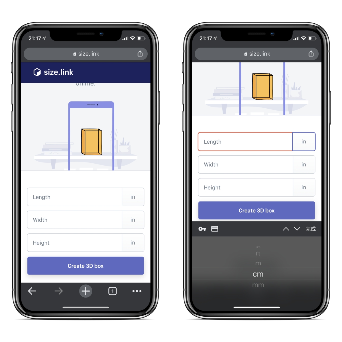 這不需要安裝 APP,進入網站後,只要輸入你想要模擬的尺吋(長寬高),右邊可以選擇單位,再按下「Create 3D box」。