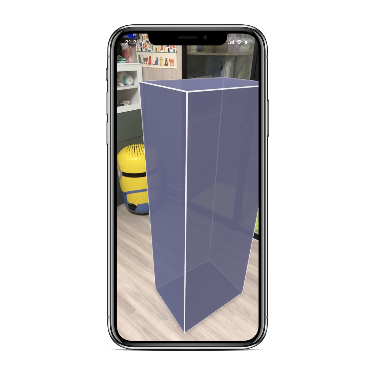 而且這就跟一般玩的 AR 一樣,前後左右移動,都可以透過手機實際看到,你拿著手機繞圈圈他也不會動,如果你要移動 3D box 可以直接用手指按住移動、放大縮小或是旋轉,非常簡易操作。