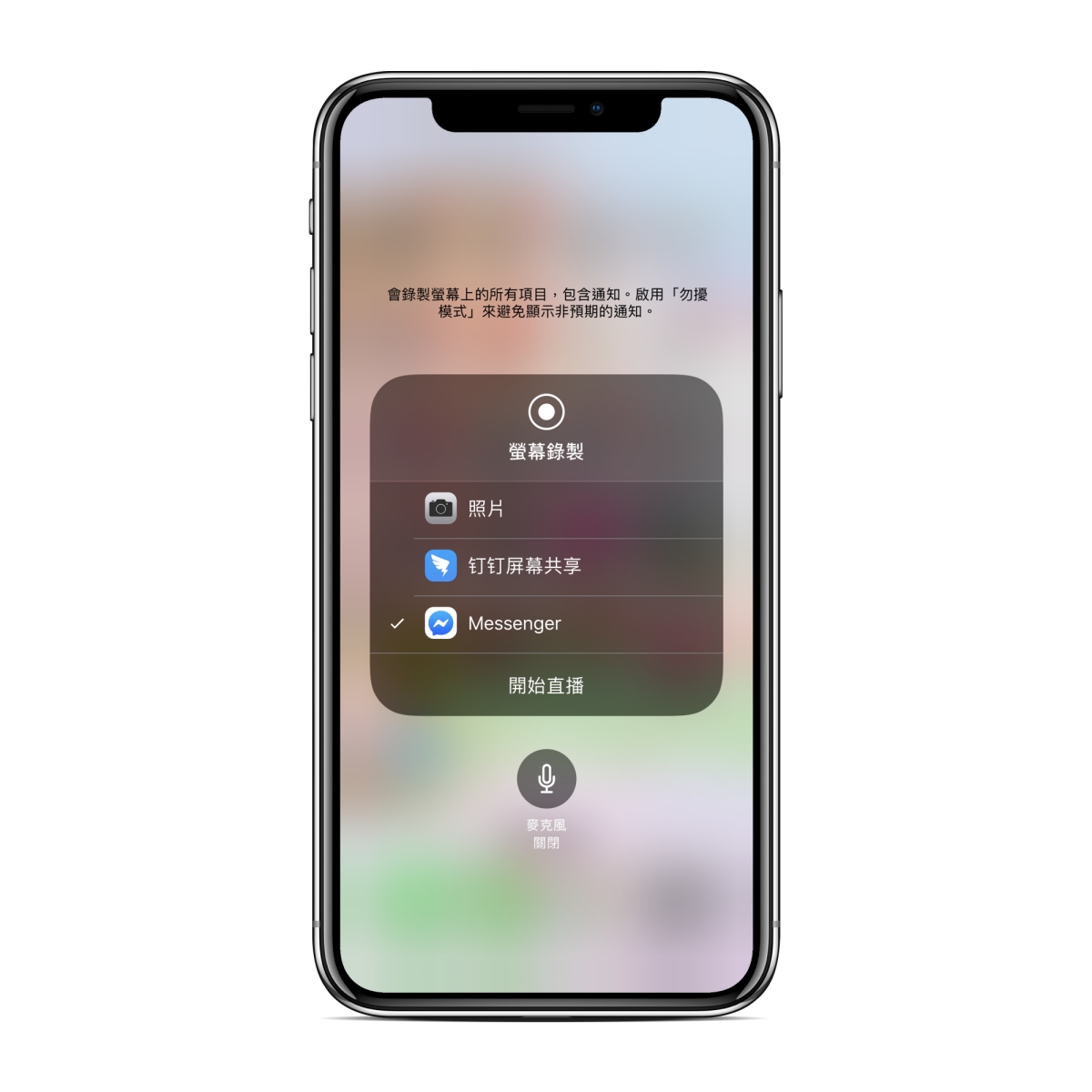 螢幕錄製長按壓後,可以選擇要錄製什麼,或是像 FB Messenger 可以啟動直播。