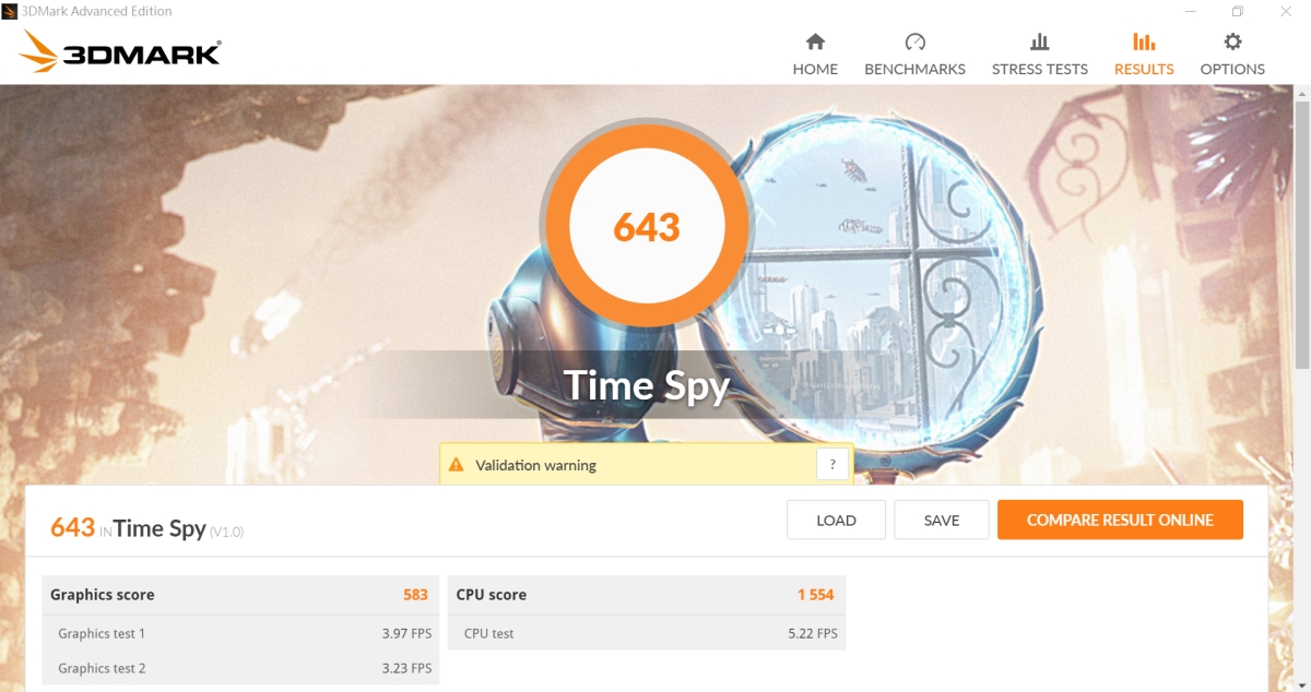 搭配獨顯的情況下,3DMark 的分數也來到 643 分,這個等級對大部份的一般使用已經是相當高了,其實用來玩像是 LOL、吃雞這類遊戲都是是夠用的。