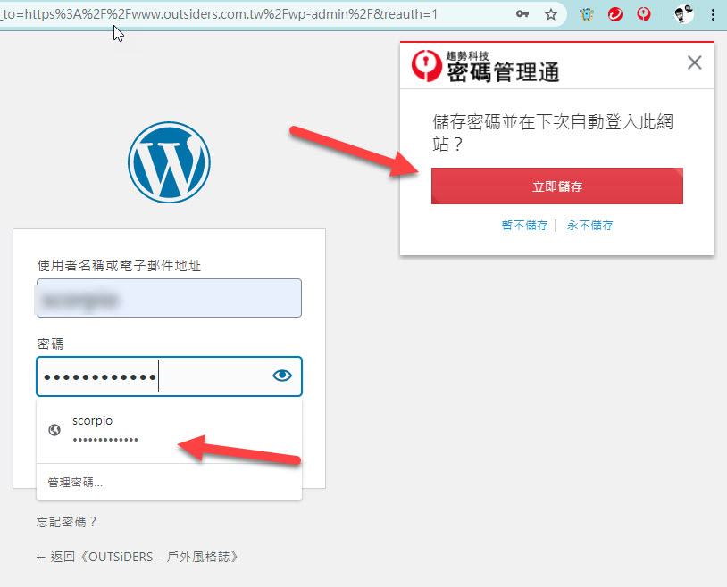 平常在登入網站時和你原本的習慣一樣,如果還沒加道密碼管理通的話,就會提醒你是否要儲存。