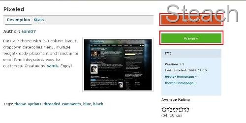 點擊紅色的框框是Download下載佈景主題,綠色的框框是Preview預覽佈景主題,想當然都是要先給他預覽一下的呀。