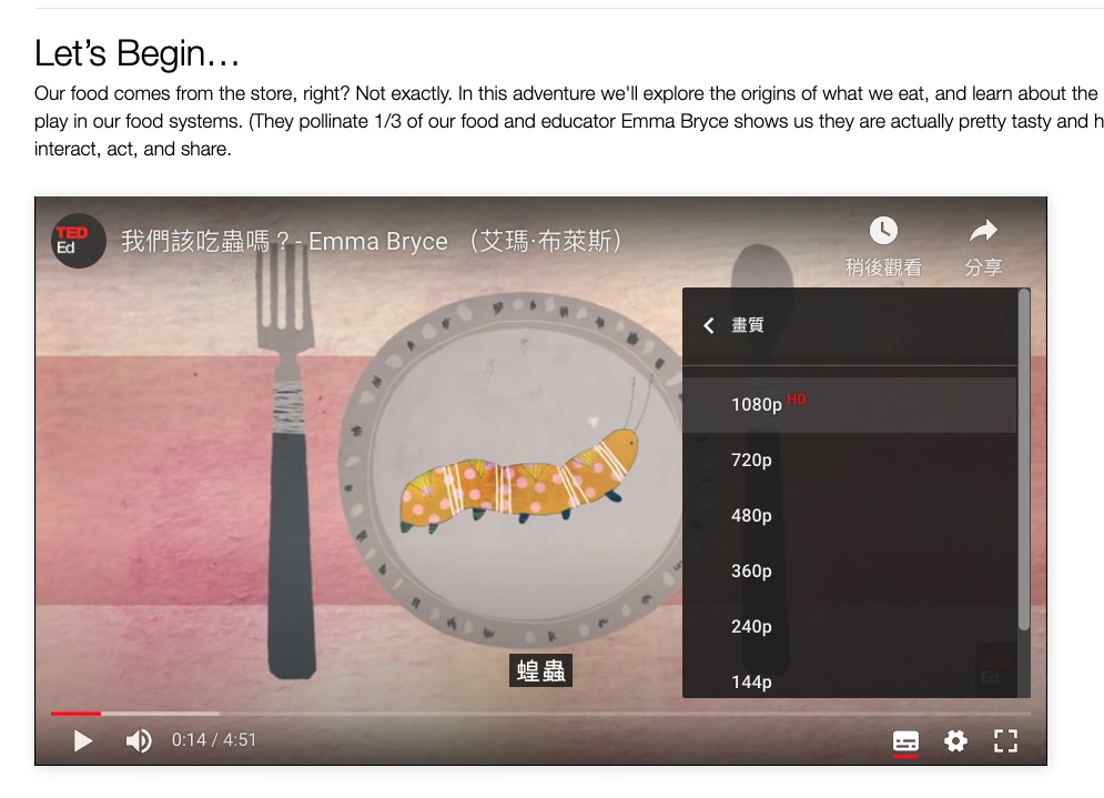 每個點進來後就可以直接看影片,影片是放置在 YouTube 頻道上,所以你也可以訂閱後用電腦或電視觀看都不錯。