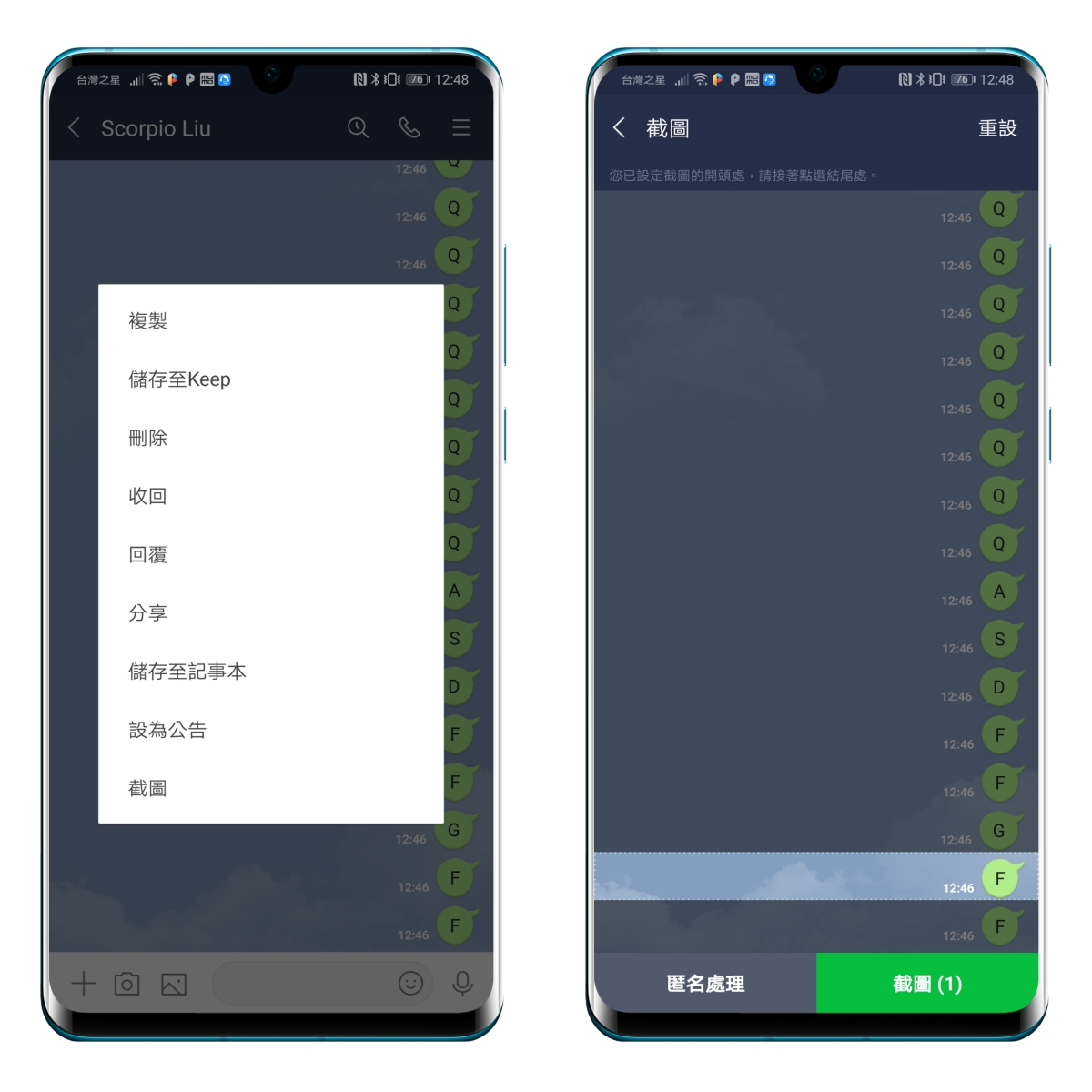 首頁 › 網路大小事 › Android 版本 LINE 終於也推出對話記錄長截圖功能,支援匿名截圖 Android 版本 LINE 終於也推出對話記錄長截圖功能,支援匿名截圖 發佈日期:2020/6/8 作者:阿湯 分類:網路大小事 在去年四月的時候,iPhone 上的 LINE 就已經推出「長截圖」的功能,是項非常方便的功能,當你對話超過二頁以上時,不用再一頁一頁的截圖,要截多長就有多長,而這項功能,原以為在 Android 版本上不久也就會推出,但結果等了這一年又二個月才推出了,無論如何,用 Android 的朋友,需要 LINE 對話記錄長截圖的話,現在就可以直接用啦,還支援匿名截圖。 Android 版本 LINE 長截圖功能: 首先在任一個你想要截圖的對話中,長按後會跳出選單,這時選擇「截圖」後,就會看到該對話被選取起來,這時你可以開始上下滑動,看你要截圖到哪一個範圍,就去按一下,就會幫你全選起來。 接下來就可以選擇要不要匿名截圖,如果選擇的話,對方的頭像都會被用其他圖片來取代,就看不出來是誰了。 截圖後就會像這樣,只剩下截圖記錄,其他都不會有,想要傳記錄給別人看的話,可以用這招,就可以兼顧到隱私。 延伸閱讀 金融素養的四大關鍵能力,提升金錢掌控力 2025/12/21 移居馬來西亞遠距工作:簽證、生活成本全攻略 2025/12/19 Android 資料恢復與修復|DroidKit 手機資料救援軟體完整指南 2025/12/8 適合遠端工作的電腦工程師居住的五大國家 2025/11/15