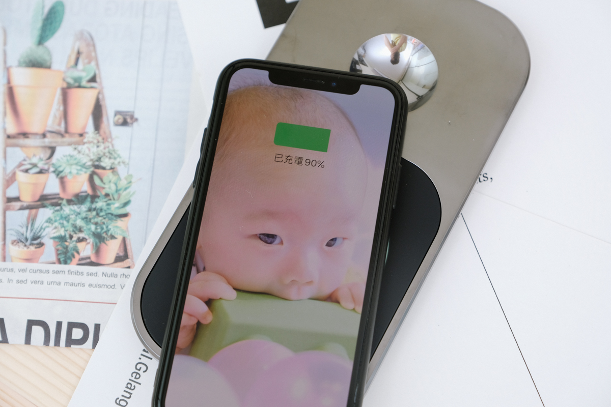 而且標配的 QI 充電板由於是支援 QI 無線充電技術,目前市面上支援無線充電的手機也可以使用哦,旅遊你也可以只帶這個充電板就可以一板二用。