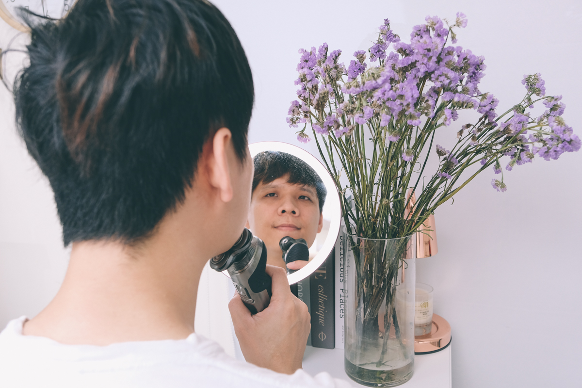 不囉嗦的立刻來試試,在拍照的時候就已經躍躍欲試了,在使用前我有特別留了快二週的鬍子,之前為了處理長短不一的狀況,先用剪刀去除較長的鬍子後再用微型電鬍刀處理,大概需要 3-5 分鐘,現在直接用飛利浦這款來刮只花了 1 分鐘就收工了。因為這上面還有搭載 AI 智能的「鬍鬚偵測傳感器」,每 15 秒會掃描臉上鬍渣一次,所以不論你的鬍子是濃密稀疏長短都能夠被精準的偵測出來,且自動調整轉速輕鬆的徹底的剃除乾淨。