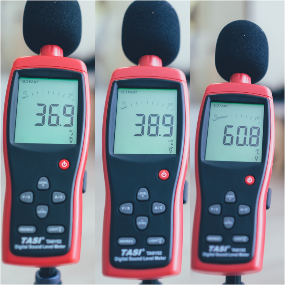 - 左:36.9dB,關閉家中冷氣及其他設備測得的最安靜音量