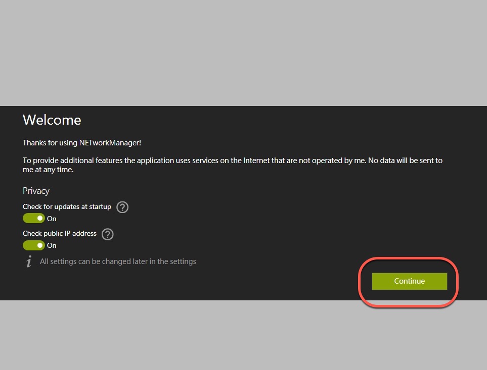 第一次執行會問你是否要開啟時檢查更新,以及檢測你的公共 IP 位址。