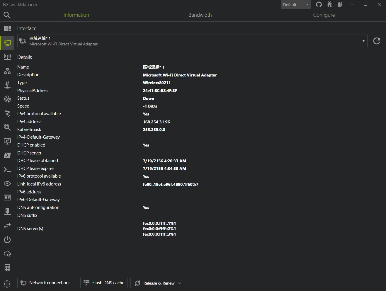 - Network Interface - Information, Bandwidth, Configure
