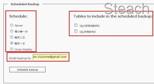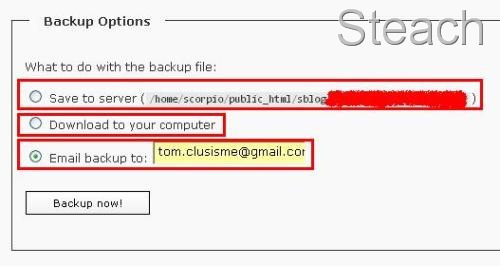 Save to server :備份到你的FTP資料夾中 Download to your computer :下載到你的電腦中 Email backup to:備份寄至Email在選在你要的備份方式後,按下Backup now!就會立即備份資料庫囉。