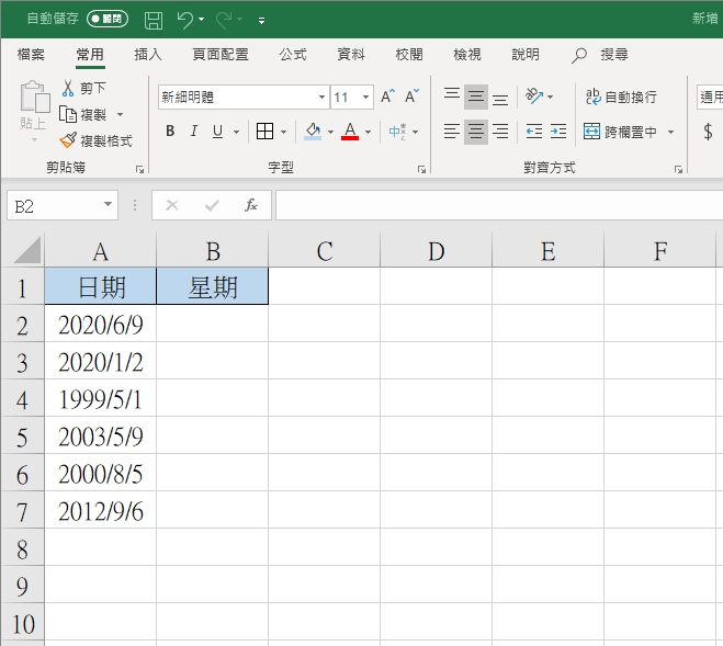 首先講一下需求,就像這樣,我們有一排是日期,當我們想新增一排星期的時候應該怎麼做?