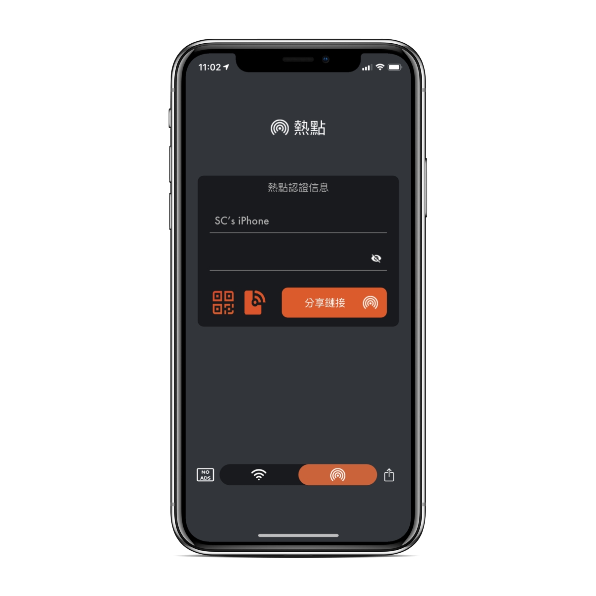 如果是想分享自己手機的熱點,同樣也支援,一樣輸入密碼後就可以分享 QR Code 囉,很方便吧。
