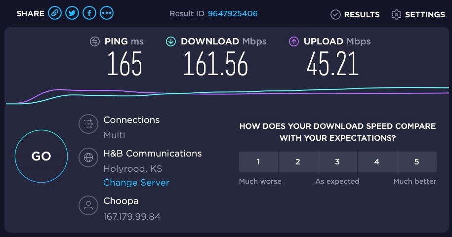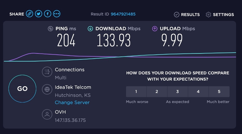 速度的部份,下面這測試是連接美國 VPN 後所測得的結果,速度頗不錯的,不過白天跟晚上有差,尖峰時間使用時,速度會明顯慢很多。