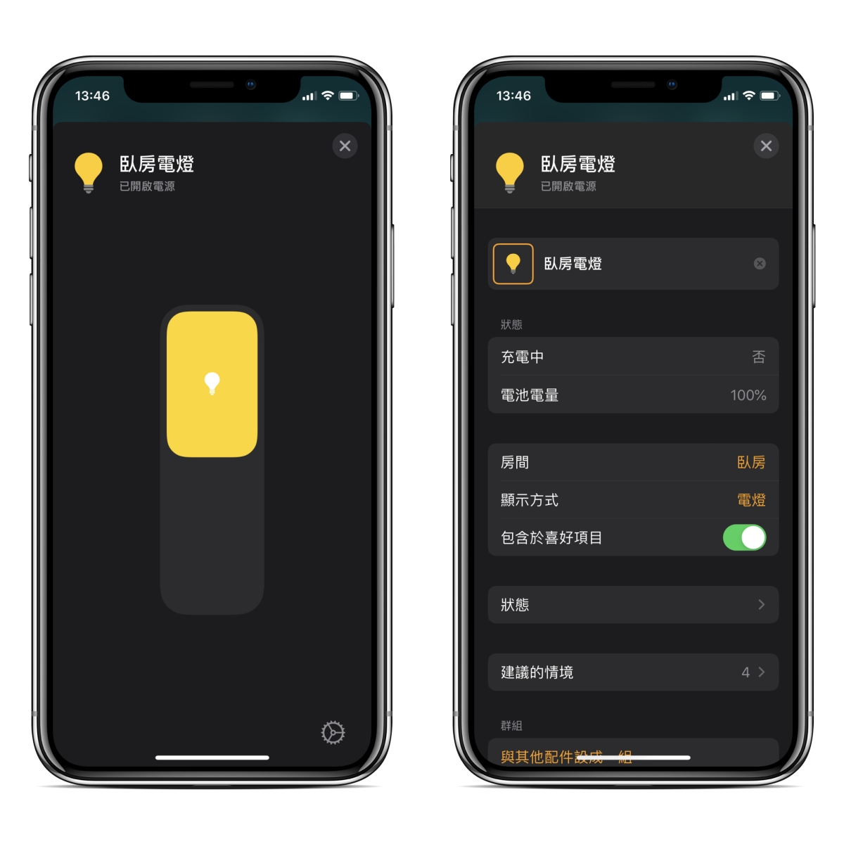 加入後就可以直接在家庭 APP 裡控制開關,也可以用 Siri 語音控制,如果你需要遠端控制,家裡可以放 APPLE TV、Homepod 或 iPad 做為中樞,出門就一樣可以控制,在這裡面也可以看到電池剩餘電量,可能等到沒電要換的時候,我再來更新用了多久。