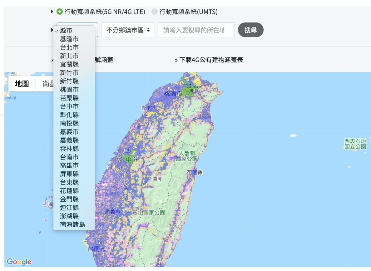 中華電信 5G 訊號查詢:https://www.emome.net/internet_coverage