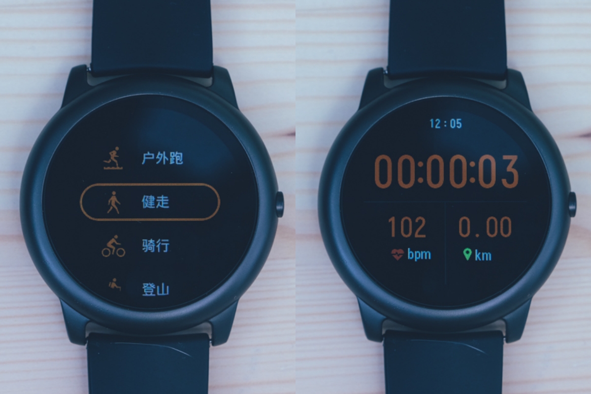 運動記錄的操作也很簡單,只要選擇運動模式就可以開始記錄,在運動的過程中隨時也可以查看目前的時間、心率以及距離。