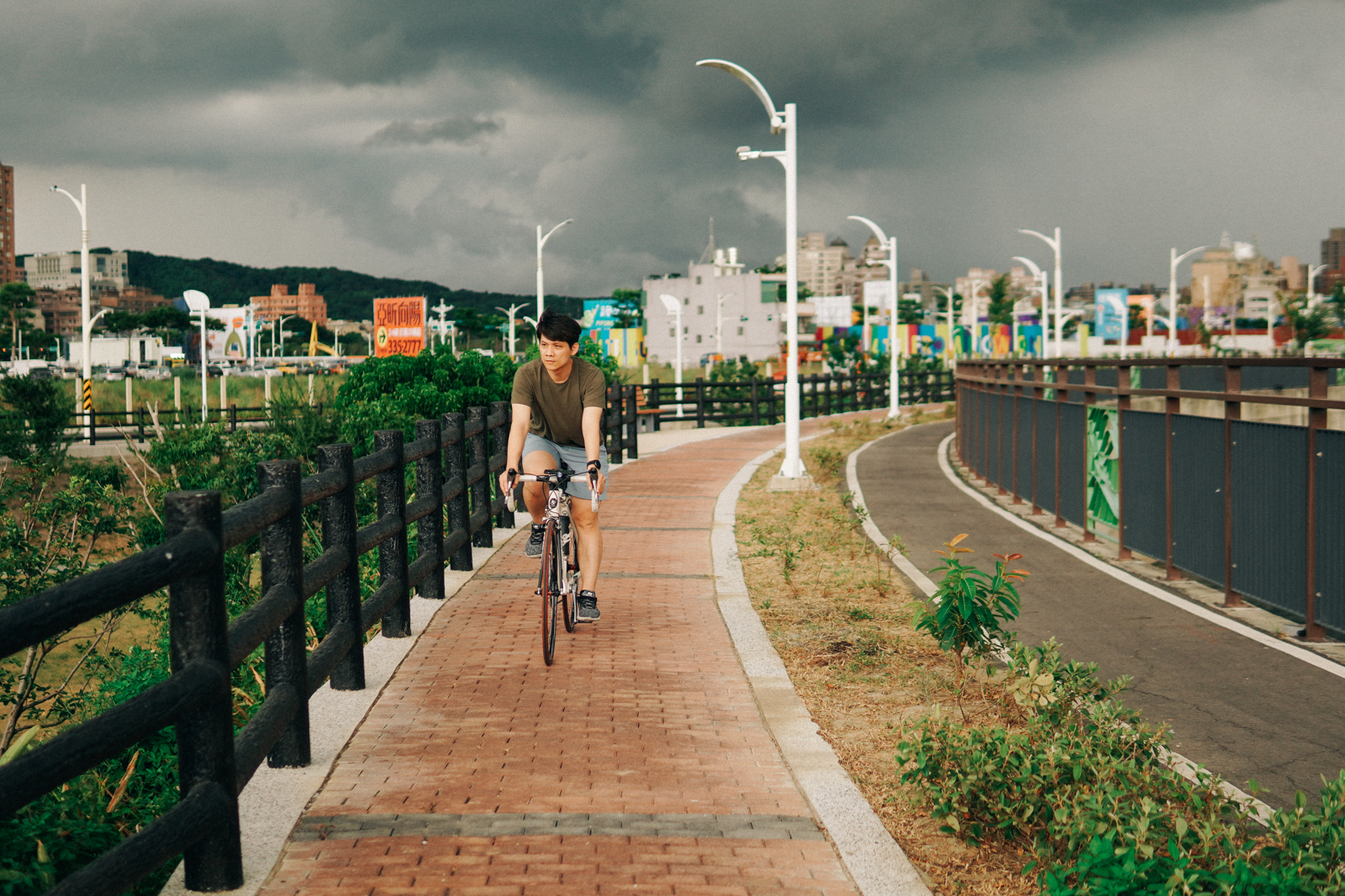 阿湯平常也沒什麼特別喜好的休閒運動,最常做的就是飛輪跟單車,出來試手錶的這天,剛好後面烏雲密佈...一整個很有電影感。