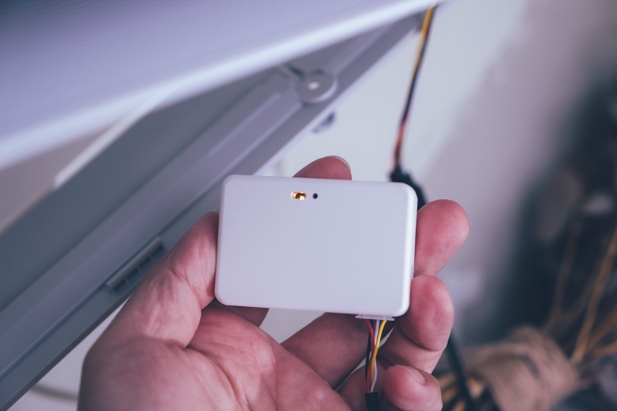 以 Panasonic 的冷氣來說,他的控制器安裝就在冷氣右下角,只要拆卸下面的飾板,就可以插上 DUC Cozy 冷氣模組。