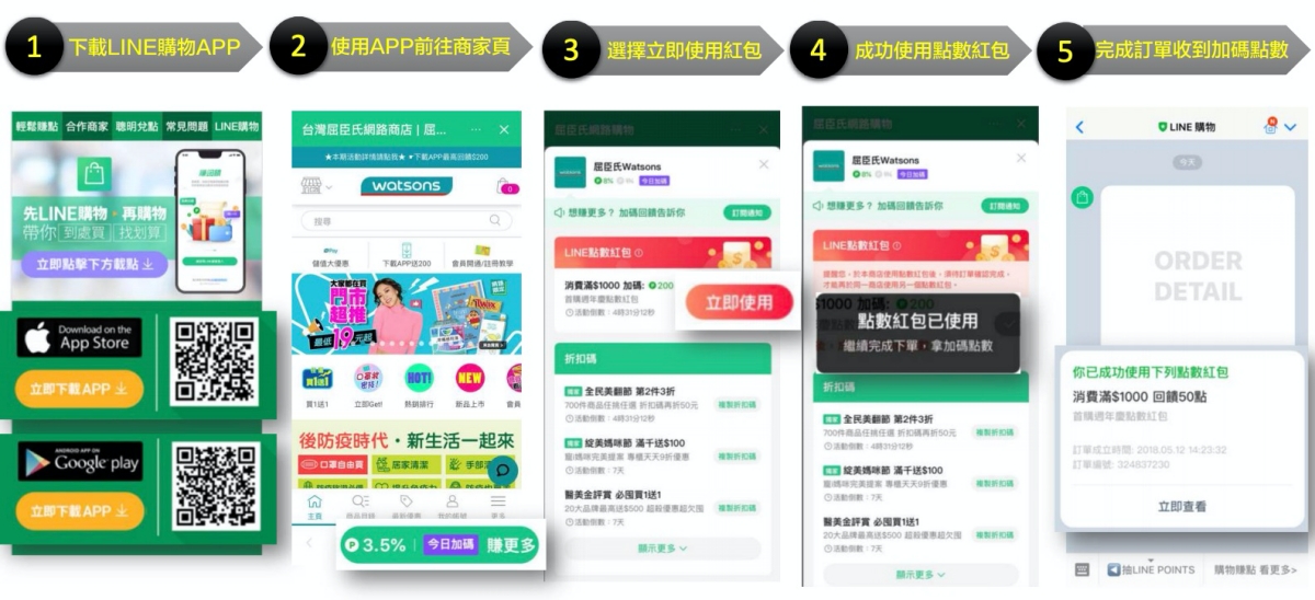 唯一不同的是,以後商品搜尋就在 LINE購物 APP 裡先進行,再去買單,這樣一來不僅不影響你原本可能有的信用卡回饋、結帳方式,還多了 LINE Points 點數的回饋,一舉多得,以後就記得「先 LINE購物再購物」就對了,這樣買才會回饋一直賺一直爽。