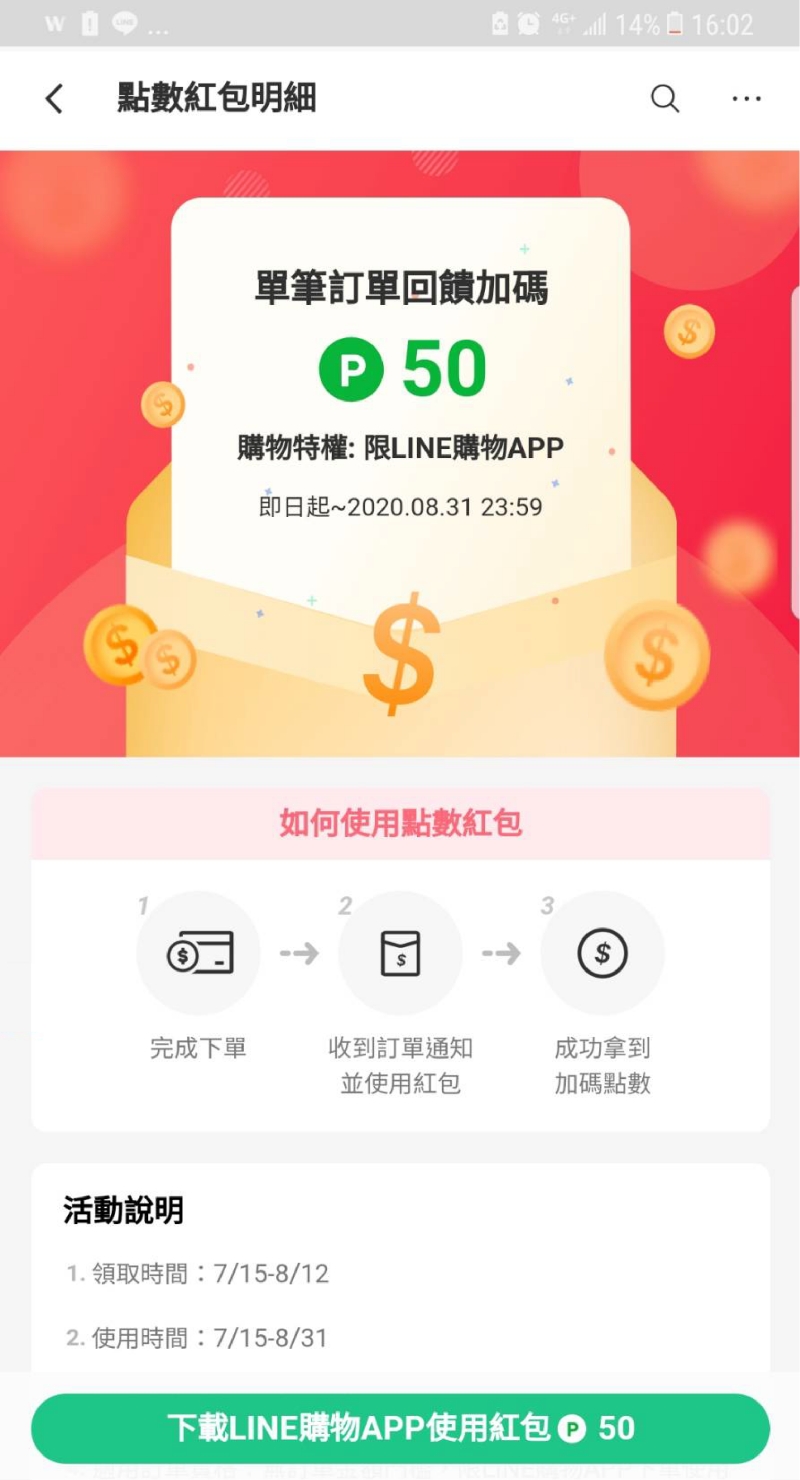 註:這裡獲得的點數紅包有使用期限,獲得後請注意說明。