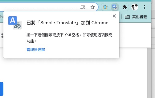 最近阿湯有點忙碌,就很少上英文課,所以有時就要借助一下翻譯工具,但每次都要貼到 Google 翻譯裡再去選擇翻譯內容真的有點麻煩,最近就找了個瀏覽器外掛真的是相見恨晚,這外掛叫做 Simple Translate,支援 Chrome、Firefox 及 Edge 瀏覽器,功能很簡單的,就是當你選取文字或句子時,下方就會出現翻譯按鈕,按一下馬上知道翻譯結果,不用再畫面切來切去了,好想要手機也有這外掛。