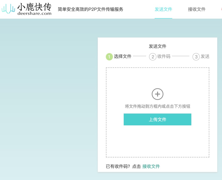 網站:https://deershare.com/進入網站後,直接將想要傳送的檔案拖曳進框框,或是點擊上傳文件後選擇檔案也是可以的。