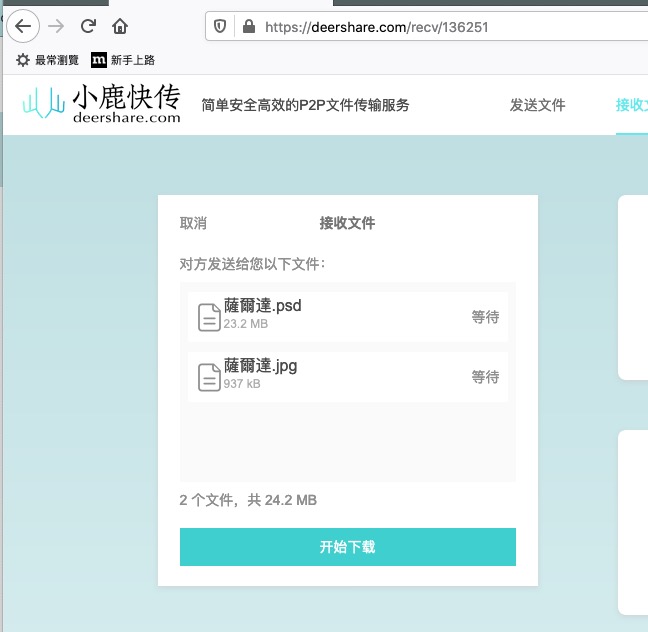 當對方開啟連結或輸入接收碼後,就可以開始下載了,這個下載再強調一次,是從你電腦直接傳送給對方,並不是事先上傳。