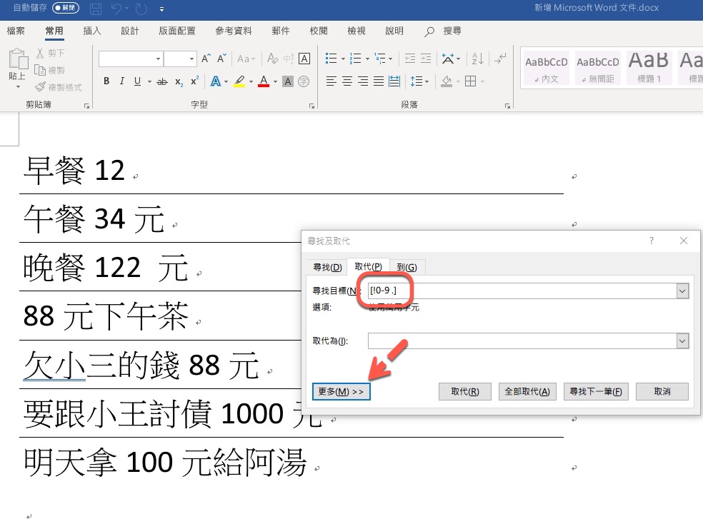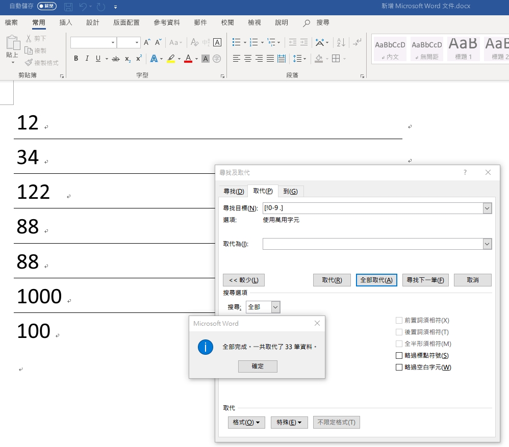 Word 教學 - 如何快速清空「數字」以外的文字?