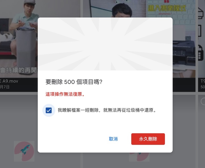 刪除前會再跟你確認一次,這邊按下去就回不去了,清空前務必要再確認。