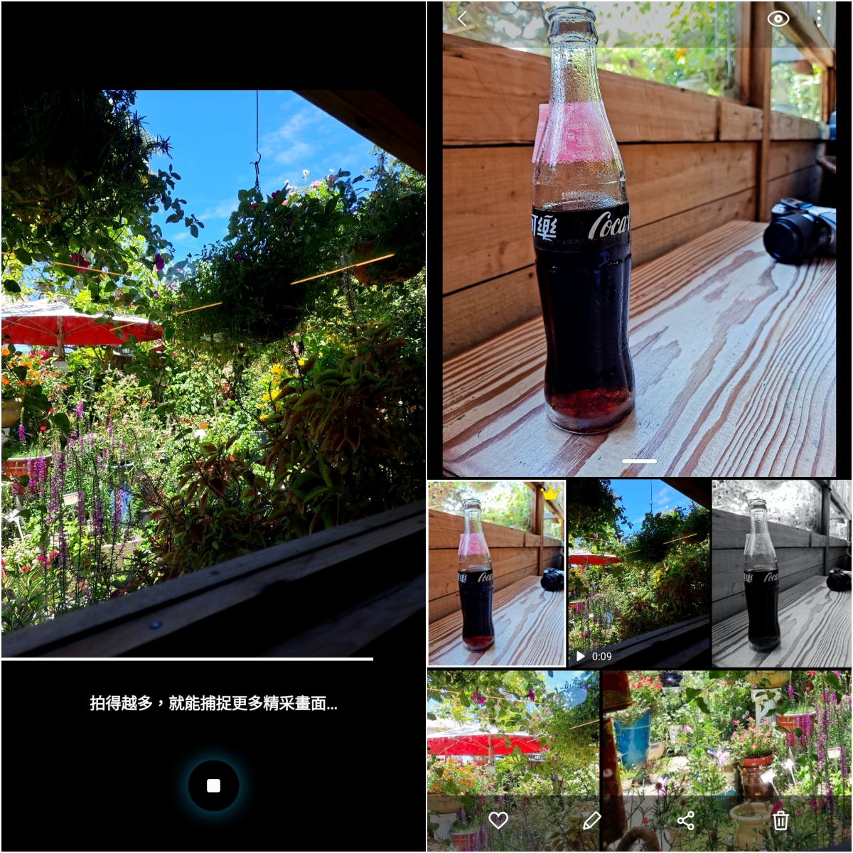 在 Galaxy A51 5G 上還有一個實用的功能叫做一鍵拍錄,當你按下去的同時,會先在第一畫面拍攝一張照片後,接下來會進行短片錄影,讓你不錯過當下的任何一個畫面,這功能我覺得很棒,因為有時當下的畫面你真的又想拍照又想錄影,有這樣的功能就不用考慮了,一鍵就滿足二種需求。