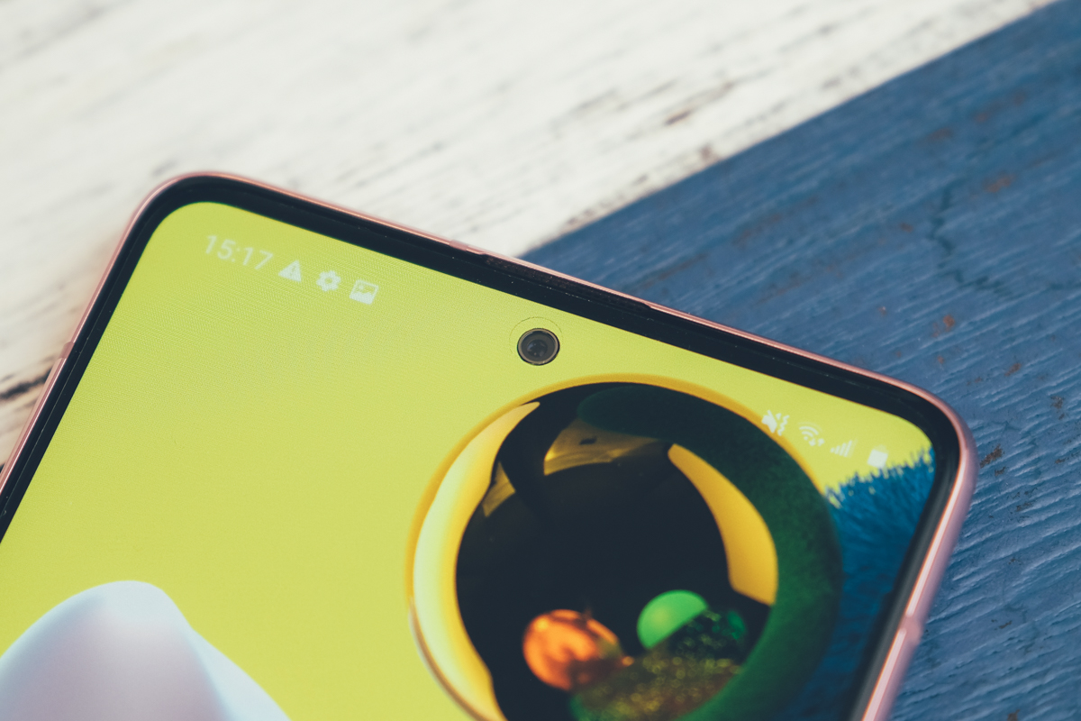 前置鏡頭直接將螢幕挖空後置入,成為了一個小圓圈在上方,搭載了3200 萬像素 /光圈 F2.2 的前鏡頭,以目前各種前置鏡頭的設計來說,像是瀏海、水滴或 U 型、隱藏式(伸縮的)還有像這挖空螢幕的 O 型設計,阿湯自己個人最喜歡的就是 O 型設計及隱藏式的,但隱藏式的會讓機身厚上不少,所以目前像 Galaxy A51 5G 這樣的鏡頭設計可以說是我的最愛。