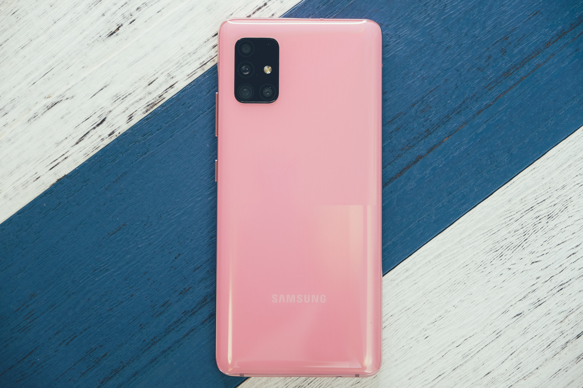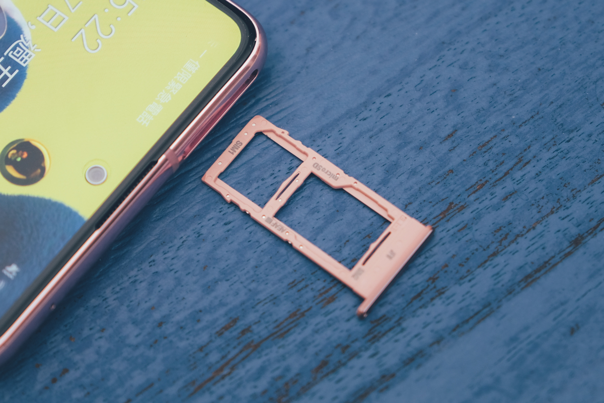 另外在上方的照片可能沒有拍的很明顯,其實 A51 跟 A71 的背面,仔細看的話是在右側中間有個十字切分線,背面其實四塊的色調都是不同的,相當的好看。