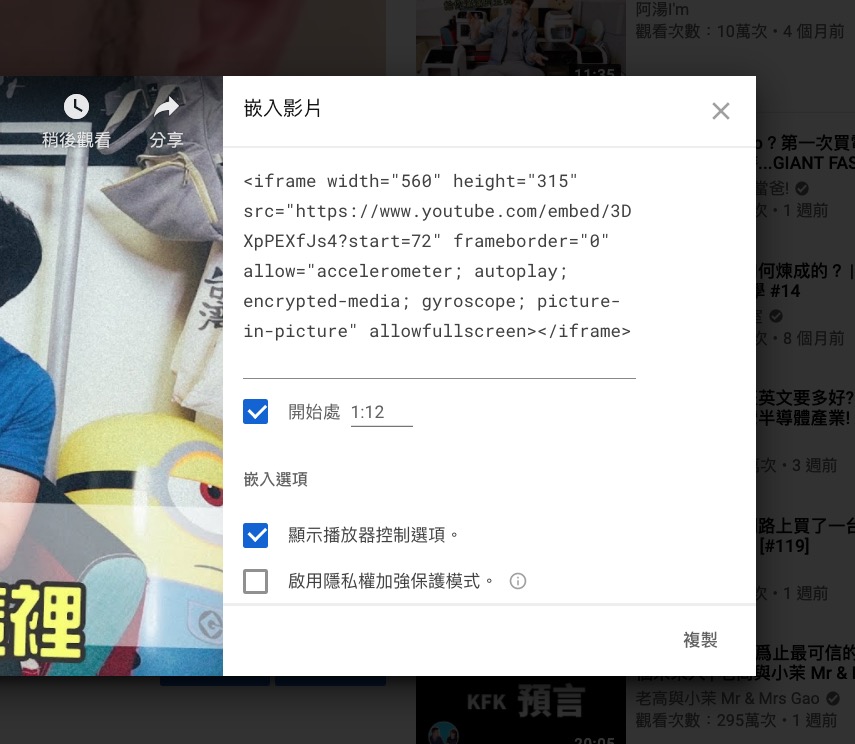 像這樣,YouTube 上如果想分享給別人,最多就是設定開始處,都沒有給你選擇結尾時間,但其實寫入參數還是可以做到的,但大家肯定不會寫,所以我們就用 YouTube Timmer 來做吧。