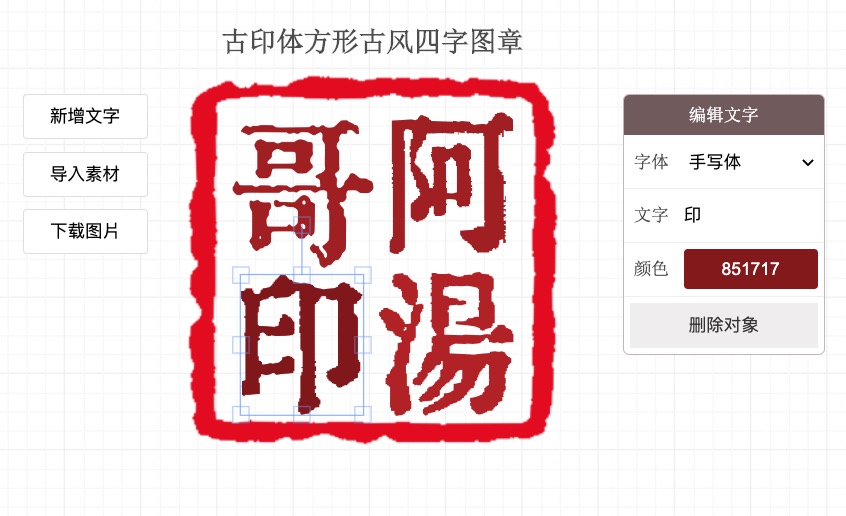 再來就可以開始編輯文章,這個印章工具和以往見到的有點不同,他是一個字一個字去編輯,並自己移動位置,大多的印章網站都是直接輸入幾個字,幫你排好版。