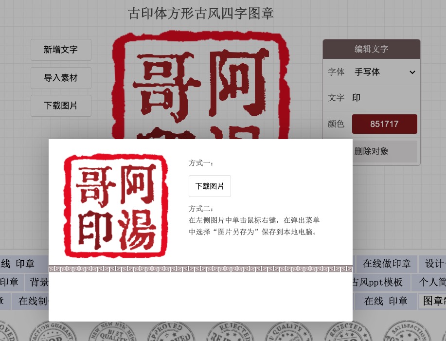網站:https://yz.mofans.net/進入網站後就可以看到預設給你使用的 30 種印章樣式,選擇後就可以開始製作。