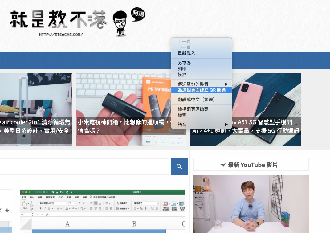 接下來每當你想要產生該網頁的 QR Code 時,只要在網頁上右鍵「為這個頁面建立 QR 圖碼」即可。