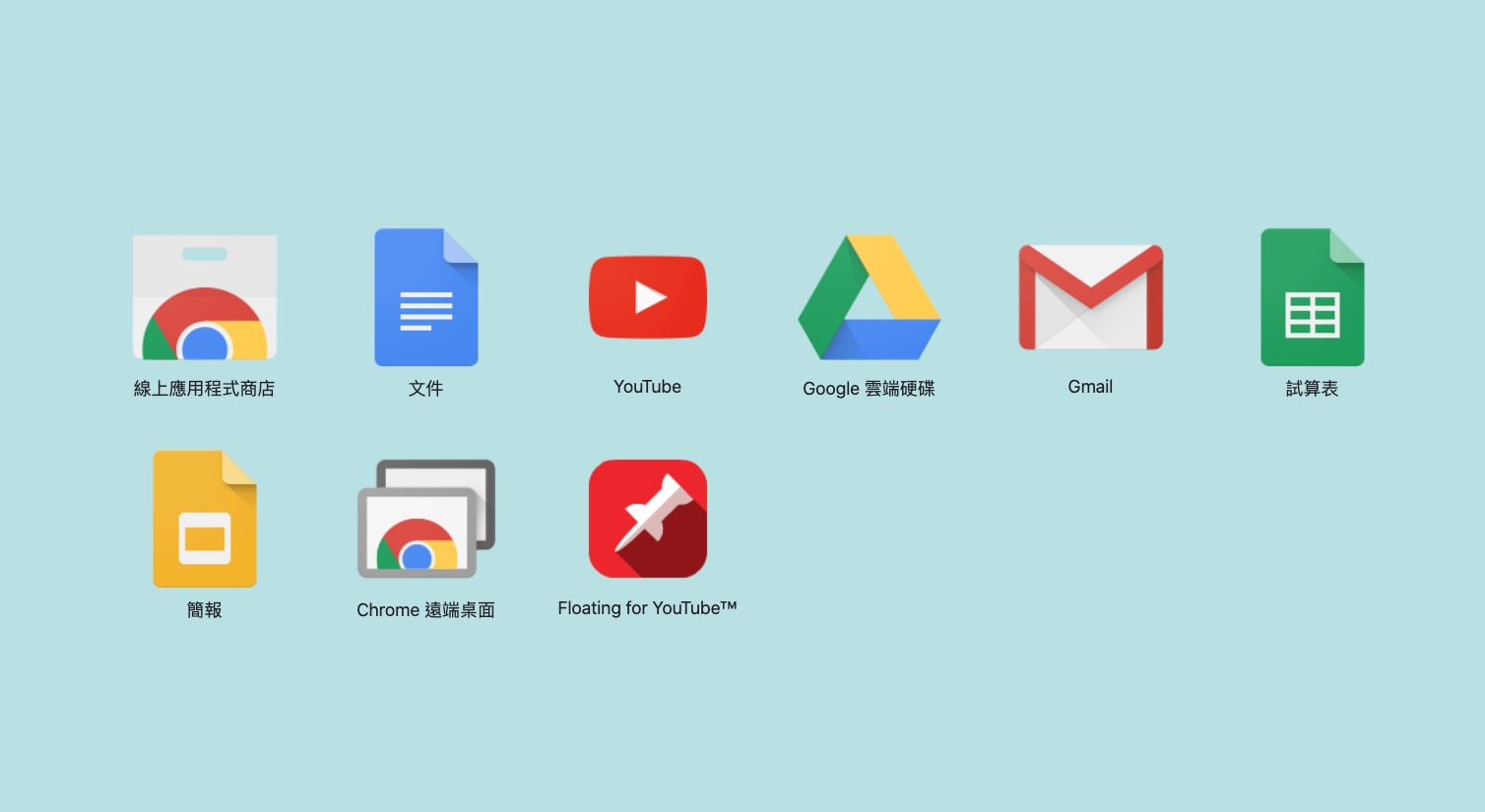 接下來就可以在 Chrome 應用程式頁面裡看到「Floating for YouTube™」,或是你在網址列上打「chrome://apps/」也可以。