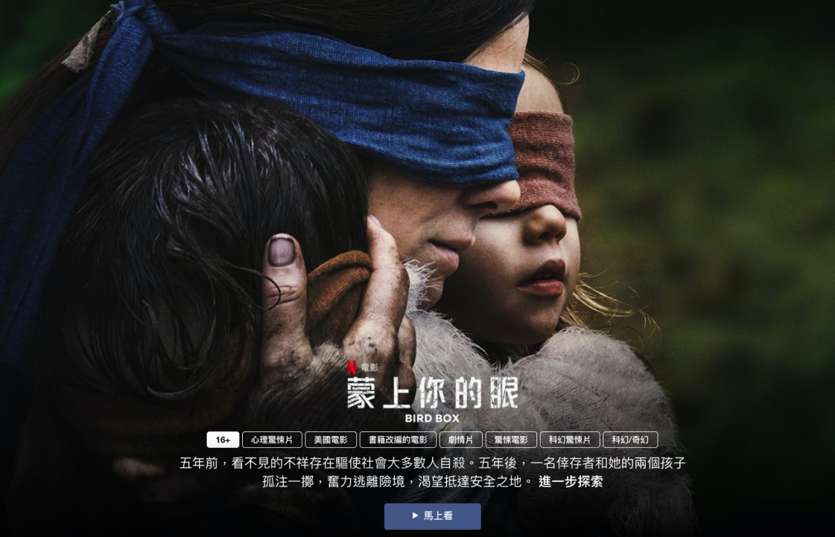 然後像是蒙上你的眼,這部電影也是我看過的,像電影類的就有完整提供,也算是蠻大方的,雖然畫質不是提供高解析度,但是用手機看的話應該是相當不錯的,之後應該每隔一段時間都會換一批免費的內容給大家,所以沒訂閱 Netflix 的也可以把網址收藏,偶而看看有沒有釋出什麼你想看。